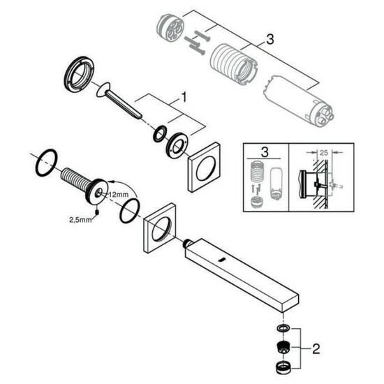 GROHE Eurocube Joy 2-Loch-Waschtischbatterie Wandmontage (ohne Unterputz-Einbaukörper) Fertigmontageset für 23 429 GROHE StarLight Oberfläche GROHE EcoJoy 5,7 l/min SpeedClean Mousseur Stichmaß 110 mm Ausladung 230 mmchrom