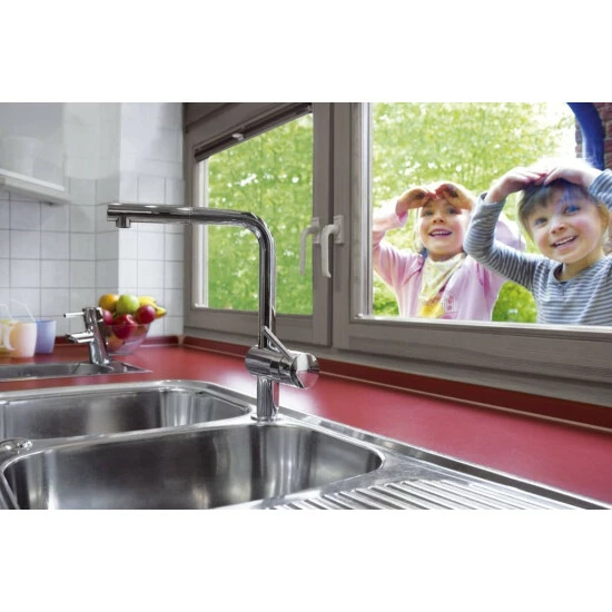 Einlochmontage · StarLight Oberfläche · SilkMove 46 mm Keramikkartusche · variabel einstellbare Mengenbegrenzung · schwenkbarer Rohrauslauf · Schwenkbereich 360° · herausziehbarer Mousseurauslauf · Schnell-Montage-System · flexible Anschlussschläuche · eigensicher Weitere technische Eigenschaften: · Anschluss Vorlauf Schlauch (Verschraubung)· Anschlussmaß Zufuhr 3/8 Zoll· Anzahl der Armaturenlöcher 1-löchig· Anzahl der Griffe eingriffig· Aufbauhöhe gesamt 328mm· Aufbauhöhe Unterkante Hahnauslass 292mm· Ausführung Ablauf drehbar oben· Auslauftyp Rohr· Ausziehbarer Einlauf mit Handdusche Nein· Ausziehbarer Einlauf mit Perlator Ja· Geräuschklasse nach DIN-52 218 Gruppe I, <=20 dB(A)· Grundfarbe Chrom· Hahn einklappbar (Bajonett) Nein· Material Hahn Messing· Mit Absperrventil für Anschluss externer Nein· Mit Griffen Ja· Mit Heißwasser-Sparfunktion Nein· Mit Kupplungen Nein· Mit Rosetten Nein· Mit Temperaturbegrenzung Nein· Mit Umstelleinheit Nein· Mittenabstand 0mm· Mundstück Wasserhahn…