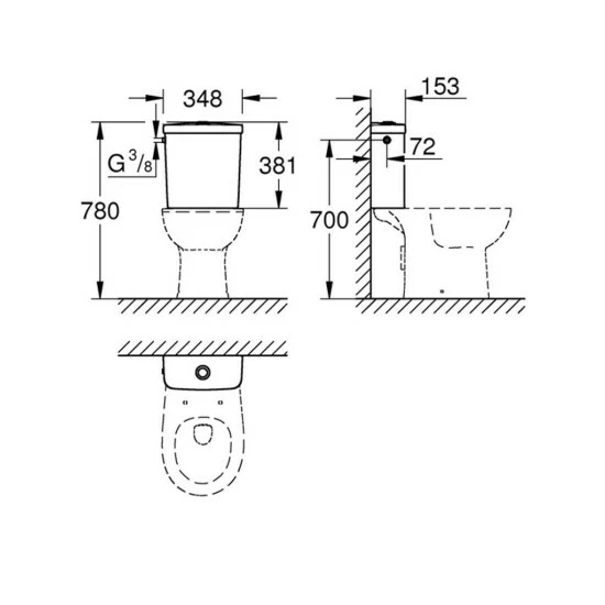 GROHE Bau Keramik Aufsatzspülkasten Anschluss seitlich mit Innengarnitur Dual Flush aus Sanitärkeramik alpinweiß