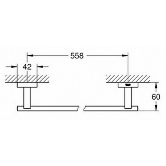 - Länge: 600 mm (Bohrabstand: 558 mm)