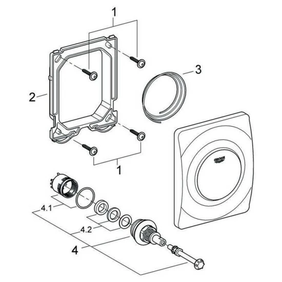 GROHE Surf Betätigungsplatte manuelle Auslösung fürUrinal Fertigmontageset für Rapido U oder Rapido UMB116 x 144 mm mechanische Funktionskartusche Fließdruckmin. 0.5 bar Betriebsdruck max. 6 bar 1.0 – 6.0 leinstellbar Armaturengruppe II GROHE StarLight-Chromoberfläche