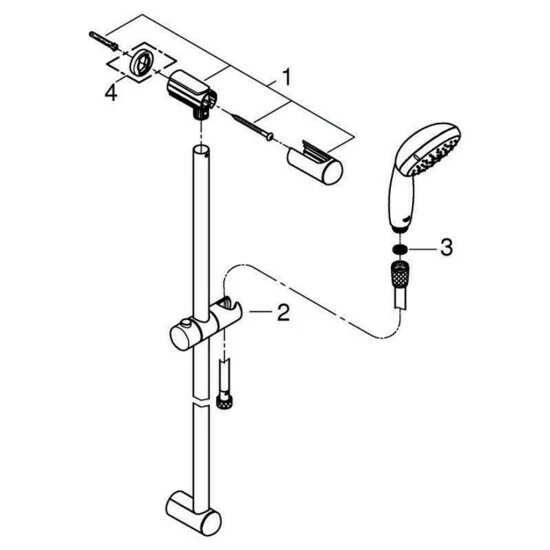 - Duschset: Handbrause, Duschschlauch, Brausestange, Gleiter