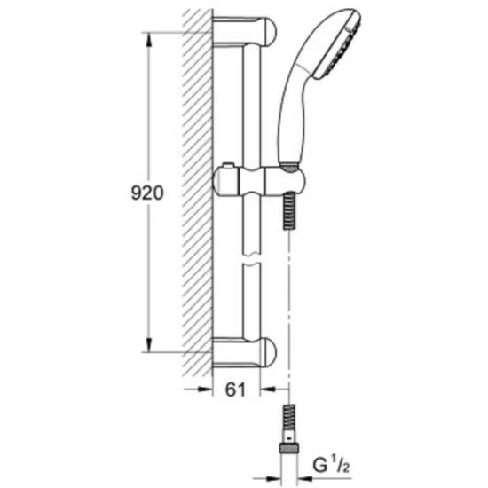 Duschstange & Schieber: Auf der 90 cm langen Brausestange stellen Sie über den Schieber die Höhe der Handbrause ein. Die Montage erfolgt in zwei Bohrlöchern.