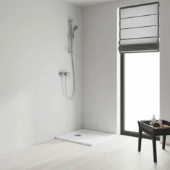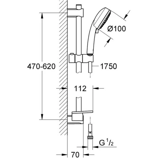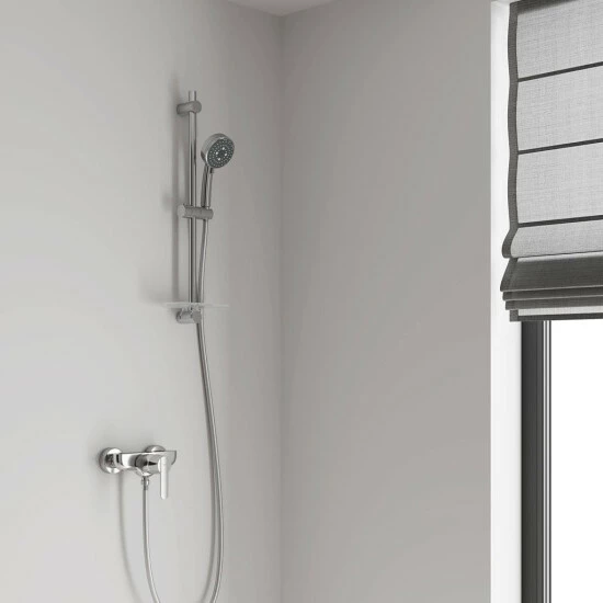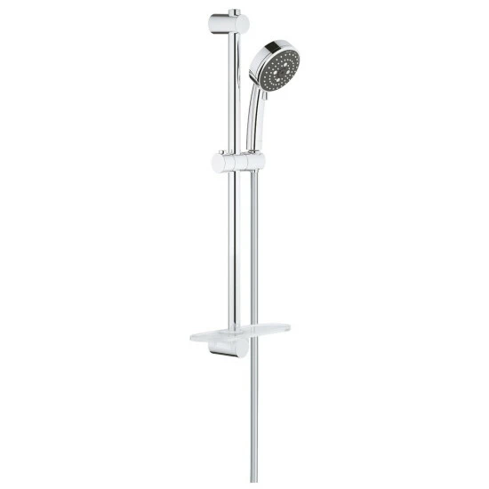 Das Grohe Vitalio Comfort 100 Brausestangenset macht jedes Badezimmer zu einem Wohlfühlort.Es sind jedoch im Grunde die intelligenten Funktionen und die großartige Vielseitigkeit, die beeindrucken. Das Brausestangenset umfasst eine Handbrause mit 100 mm Durchmesser, eine 600 mm lange Brausestange, eine Grohe EasyReach Ablage und einen 1750 mm langen Vitalioflex Schlauch.Die Handbrause bietet 3 Strahlbilder, passend für jede Stimmung – den sanften, entspannenden Rain Strahl, den mit Sauerstoff angereicherten Rain O² Strahl und den starken, pulsierenden Massage Strahl. Umweltbewusste Verbraucher lieben den Durchflussbegrenzer auf 9,5 l/min von Grohe EcoJoy. Damit lassen sich Wasser und Geld sparen, ohne dass die Strahlqualität beeinträchtigt wird. Die Grohe DreamSpray Technologie stellt einen gleichmäßigen, kräftigen Strahl aus jeder Düse sicher. Mit der SpeedClean Antikalk-Funktion ist die Reinigung denkbar einfach. Sie reinigen die Düsen, indem sie einfach mit dem Finger darüber