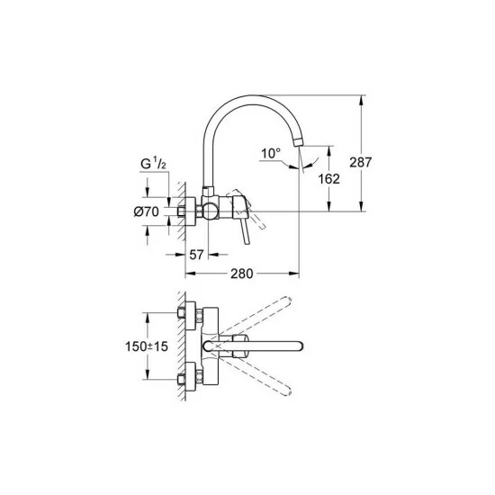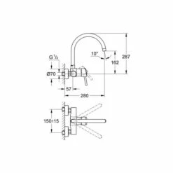 Wandmontage · StarLight Oberfläche · SilkMove 46 mm Keramikkartusche · variabel einstellbare Mengenbegrenzung · schwenkbarer Rohrauslauf · Schwenkbereich 360° · Auslauf mit Mousseur · Ausladung 280 mm · S-Anschlüsse Weitere technische Eigenschaften: · Anschluss Vorlauf Außengewinde· Anschlussmaß Zufuhr 3/8 Zoll· Anzahl der Armaturenlöcher 2-löchig· Anzahl der Griffe eingriffig· Aufbauhöhe gesamt 287mm· Aufbauhöhe Unterkante Hahnauslass 162mm· Ausführung Ablauf drehbar oben· Auslauftyp Rohr· Ausziehbarer Einlauf mit Handdusche Nein· Ausziehbarer Einlauf mit Perlator Nein· Geräuschklasse nach DIN-52 218 Gruppe I, <=20 dB(A)· Grundfarbe Chrom· Hahn einklappbar (Bajonett) Nein· Material Hahn sonstige· Mit Absperrventil für Anschluss externer Nein· Mit Griffen Ja· Mit Heißwasser-Sparfunktion Nein· Mit Kupplungen Ja· Mit Rosetten Ja· Mit Temperaturbegrenzung Nein· Mit Umstelleinheit Nein· Mittenabstand 150mm· Mundstück Wasserhahn Schaumstrahldüse· Niederdruckausführung Nein· Oberflächenbe…
