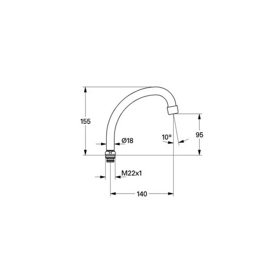 schwenkbar · Auslauf mit Mousseur · Verschraubung M 22 x 1 · DR-Messing · StarLight Oberfläche Weitere technische Eigenschaften: · Anschlussmaß Zufuhr M22· Aufbauhöhe gesamt 155mm· Aufbauhöhe Unterkante Hahnauslass 95mm· Ausladung 140mm· Drehbarer Auslauf Ja· Form U-Auslauf· Grundfarbe Chrom· Montageart Armatur· Mundstück Wasserhahn Schaumstrahldüse· Oberflächenbehandlung poliert· Oberflächenschutz verchromt· Werkstoff Messing