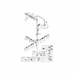 bestehend aus: horizontal schwenkbarer 450 mm Duscharm, Aufputz-Thermostat mit Aquadimmer Funktion, ermöglicht den Wechsel zwischen: Euphoria 260 Kopfbrause (26455), 3 Strahlarten, Rain SmartRain und Jet, mit Kugelgelenk, Drehwinkel +- 15°, und Handbrause Euphoria 110 Massage (27221), 3 Strahlarten, Rain, SmartRain und Massage, in der Höhe verstellbar mittels Gleitelement, Brauseschlauch Silverflex 1750 mm (28388), TurboStat Kompaktkartusche mit Dehnstoff-Thermoelement, SafeStop Sicherheitssperre bei 38 °C, SafeStop Plus Sicherheitssperre bei 38 °C und zusätzlich optional einsetzbarer Temperaturendanschlag bei 43 °C, DreamSpray, StarLight Oberfläche, SpeedClean Antikalk-System, Twistfree gegen Verdrehen des Brauseschlauchs, für Durchlauferhitzer ab 18 kW/h geeignet, Mindestdurchfluss 7 l/min