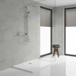 Der SmartRain Strahl ist breiter für ein belebendes, entspannendes Erlebnis und der Rain Strahl nutzt alle Düsen des großen Brausebodens, damit der ganze Körper komplett mit Wasser bedeckt ist und das Duschen wirklich angenehm ist.