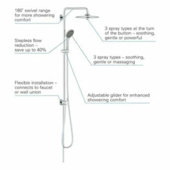 - Duscharm: 450mm groß und um 180° schwenkbar.