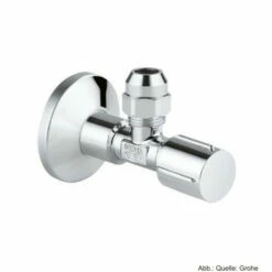 Eigenschaften: GROHE Eckventil 1/2×3/8“ Rosette Metallgriff Quetschverschraubung 10mm Anschlussgewinde für eine einfache Abdichtung Wandanschluss 1/2“ Ventil 3/8“ Mit Längenausgleich Mit Druckmutter Ø 10 mm Ring-Dichtung Lange Verbindungswelle Ergonomischer Metallgriff Metallrosette Ø 55 mm GROHE StarLight® Finish Farbe: verchromt GR22037000