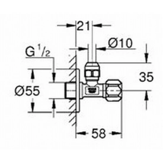 GROHE Eckventil, DN 15 angerauhtes Gewinde zum vereinfachten Eindichten Wandanschluss 1/2“ Abgang 3/8“ mit Längenausgleich mit Quetschverschraubung D: 10 mm wassergeschützte Spindelabsperrung, Messing, mit Fettkammer und doppelter O-Ring Abdichtung ergonomischer Griff Markierung neutral Schubrosette aus Metall D: 55 mm GROHE StarLight Oberfläche chrom