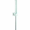 GROHE Essence Einhand-Bidetbatterie, DN 15 Einlochmontage GROHE SilkMove 28 mm Keramikkartusche mit Temperaturbegrenzer GROHE StarLight Oberfläche GROHE QuickFix Plus Schnellbefestigungssystem Kugelgelenk-Mousseur Zugstangen-Ablaufgarnitur 1 1/4“ flexible Anschlussschläuche cool sunrise gebürstet