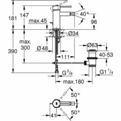 GROHE Essence Einhand-Bidetbatterie, DN 15 Einlochmontage GROHE SilkMove 28 mm Keramikkartusche mit Temperaturbegrenzer GROHE StarLight Oberfläche GROHE QuickFix Plus Schnellbefestigungssystem Kugelgelenk-Mousseur Zugstangen-Ablaufgarnitur 1 1/4“ flexible Anschlussschläuche warm sunset gebürstet