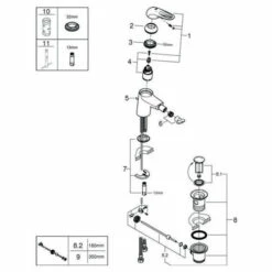 GROHE Eurostyle Einhand-Bidetbatterie, DN 15 Einlochmontage offener Metall-Hebelgriff GROHE SilkMove 35 mm Keramikkartusche variabel einstellbare Mengenbegrenzung mit Temperaturbegrenzer GROHE StarLight Oberfläche GROHE EcoJoy 5,7 l/min Mousseur GROHE QuickFix Schnellbefestigungssystem mit Kugelgelenk Zugstangen-Ablaufgarnitur 1 1/4“ flexible Anschlussschläuche chrom
