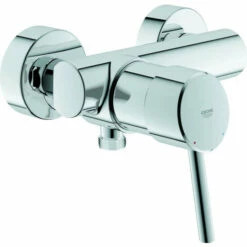 Die GROHE Concetto EH-Brausebatterie ist ausgestattet mit der GROHE StarLight® Chromoberfläche, einer GROHE SilkMove® 46 mm Keramikkartusche, sowie einer variabel einstellbaren Mengenbegrenzung.
