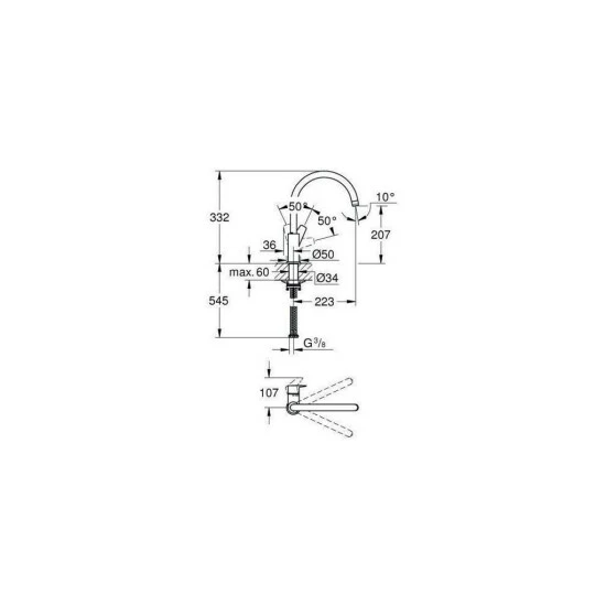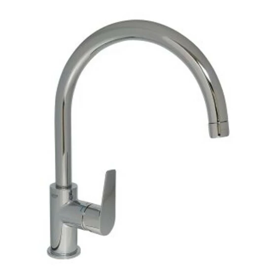 GROHE BauEdge Einhand-Spültischbatterie, 1/2“ hoher Auslauf Einlochmontage GROHE StarLight Oberfläche GROHE Longlife 28 mm Keramikkartusche GROHE Zero getrennte innenliegende Wasserwege – kein Kontakt mit Blei oder Nickel innerhalb der Armatur Auslauf mit Mousseur schwenkbarer Rohrauslauf Schwenkbereich 360 Grad flexible Anschlussschläuche Schnell-Montage-System GROHE FastFixation Plus Schnellbefestigungssystem