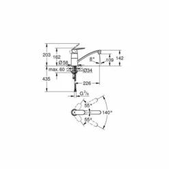 - schwenkbarer Rohrauslauf, Schwenkbereich 140 Grad