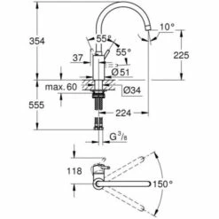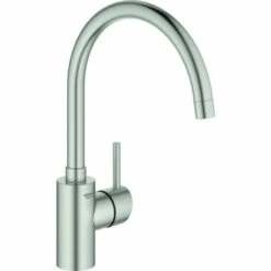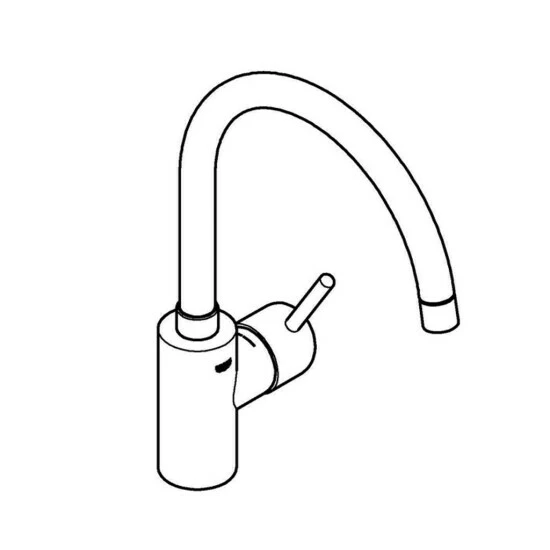 GROHE Concetto Einhand-Spültischbatterie, 1/2“ hoher Auslauf Einlochmontage GROHE StarLight Oberfläche GROHE SilkMove 35 mm Keramikkartusche GROHE Zero getrennte innenliegende Wasserwege – kein Kontakt mit Blei oder Nickel innerhalb der Armatur Auslauf mit Mousseur variabel einstellbare Mengenbegrenzung schwenkbarer Rohrauslauf Schwenkbereich wählbar: 0 Grad / 150 Grad flexible Anschlussschläuche GROHE FastFixation Schnellbefestigungssystem