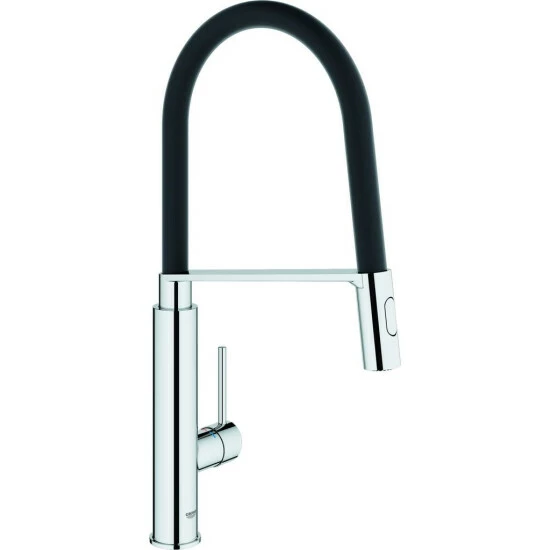 GROHE Concetto Einhand-Spültischbatterie, DN 15 Einlochmontage GROHE StarLight Oberfläche GROHE SilkMove 28 mm Keramikkartusche mit integriertem Temperaturbegrenzer herausziehbare SpeedClean Profibrause mit flexiblem, hygienischem GROHFlexx Küche Santopren-Schlauch Umstellung: Laminarstrahl/SpeedClean Brausestrahl automatische Rückstellung auf Laminarstrahl GROHE EasyDock M integrierter Magnet für eine einfache Rückführung der Spülbrause schwenkbarer Auslauf, Schwenkbereich 360 Grad Eigensicher gegen Rückfließen flexible Anschlussschläuche Schnell-Montage-System supersteel