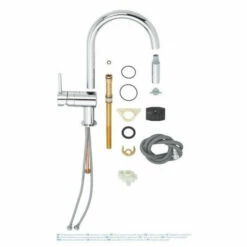 GROHE Einhebel-Spültischmischer C-Auslauf Minta 32321002 – Waschtisch-Einlochmontage – GROHE StarLight Chrome – GROHE SilkMove Ceramic Kartusche 46 mm – GROHE EasyDock sorgt dafür, dass Ihre Handbrause oder ausziehbarer Mousseur korrekt ausgetauscht wird – Ausziehbare Handbrause 2 Düsen – Umsteller: Laminarstrahl / Regenspray.