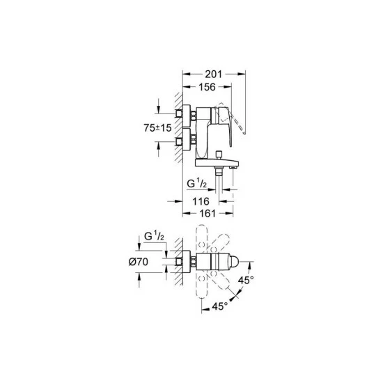 Die Grohe Eurostyle C Vertica-Einhand-Wannenbatterie DN 15 für die Wandmontage und ist ausgestattet mit einem Bedienungshebel aus Metall, einer GROHE SilkMove® 46 mm Keramikkartusche, der GROHE StarLight® Chromoberfläche, einer variabel einstellbaren Mengenbegrenzung und der automatische Umstellung feststellbar von Wanne auf Brause, außerdem ist der Auslauf arretierbarer.