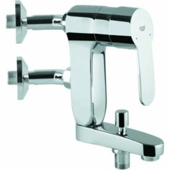 GROHE Eurostyle Cosmopolitan Vertica-Einhand-Wannenbatterie, DN 15 Wandmontage Bedienungshebel aus Metall GROHE SilkMove 46 mm Keramikkartusche GROHE StarLight Oberfläche variabel einstellbare Mengenbegrenzung automatische Umstellung feststellbar: Wanne/Brause arretierbarer Auslauf integrierter Rückflussverhinderer im Brauseabgang 1/2“ Anschlusswinkel 45 Grad Wandrosetten aus Metall Sonderzubehör: Temperaturbegrenzer 46 375 Eigensicher gegen Rückfließen Armaturengruppe I nach DIN 4109chrom