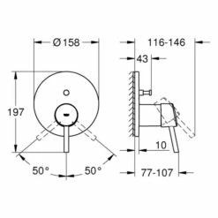 ohne Unterputz-Einbaukörper · SilkMove 46 mm Keramikkartusche · StarLight Oberfläche · Wandrosette mit QuickFix mit verdeckter Rosetten- und Schaftabdichtung · verdeckte Befestigung Rosette aus Metall · nachträglich 6° ausrichtbar · Bedienungshebel aus Metall,