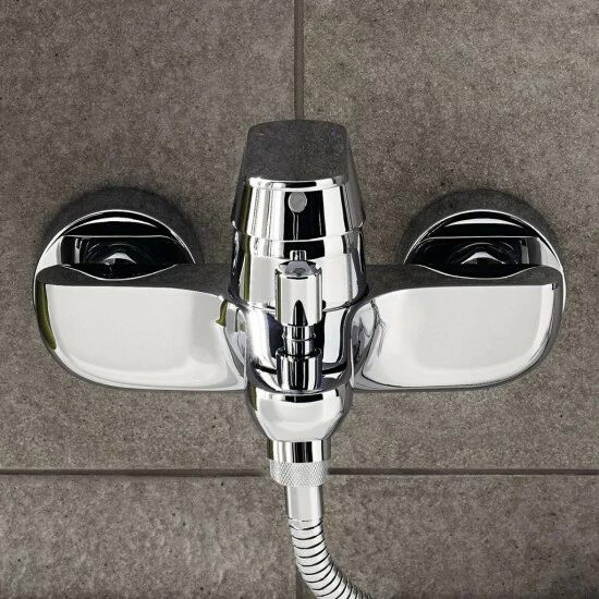 GROHE SilkMove® 46 mm Keramikkartusche, der GROHE StarLight® Chromoberflächeausgestattet. Die Armatur hat eine variabel einstellbare Mengenbegrenzung, eine einstellbare Mindestmenge von 2,5 l/min und eine automatische Umstellung von Wanne auf Brause. Der Brauseabgang 1/2′ ist mit integriertem Rückflussverhinderer und der Auslauf mit Mousseur. Die S-Anschlüsse sind ebenfalls mit im Lieferumfang.