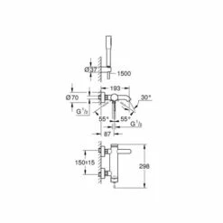Die GROHE Essence Einhand-Wannenbatterie mit Brausegarnitur für die Wandmontage ist mit einem Bedienungshebel aus Metall mit Temperaturbegrenzer, einer GROHE SilkMove® 35 mm Keramikkartusche, der GROHE StarLight® Chromoberfläche sowie einem 1/2′-Brauseabgang mit integriertem Rückflussverhinderer ausgestattet.