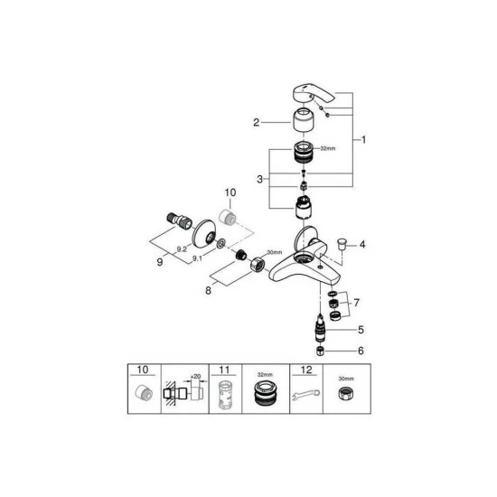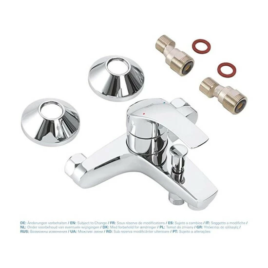 Die GROHE Eurosmart Einhand-Wannenbatterie für die Wandmontage ist mit einem Bedienungshebel aus Metall mit Temperaturbegrenzer, einer GROHE SilkMove® 35 mm Keramikkartusche, der GROHE StarLight® Chromoberfläche, einer variabel einstellbaren Mengenbegrenzung sowie einem 1/2′-Brauseabgang mit integriertem Rückflussverhinderer ausgestattet. Die Umstellung zwischen Wanne und Brause erfolgt automatisch. Zum Lieferumfang gehören die S-Anschlüsse und die Wandrosetten aus Metall.