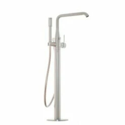 GROHE Essence Einhand-Wannenbatterie DN 15, Bodenmontage Fertigmontageset für 45 984 ohne Rohbau-Set GROHE SilkMove 35 mm Keramikkartusche mit Temperaturbegrenzer GROHE StarLight Oberfläche automatische Umstellung: Wanne/Brause schwenkbarer Auslauf mit Anschlagbegrenzung Ausladung 277 mm integrierter Rückflussverhinderer im Brauseabgang 1/2“ mit Brausehalter Sena Stick Handbrause 26 465 Brauseschlauch Silverflex 1.250 mm (28 362) Eigensicher gegen Rückfließen supersteel