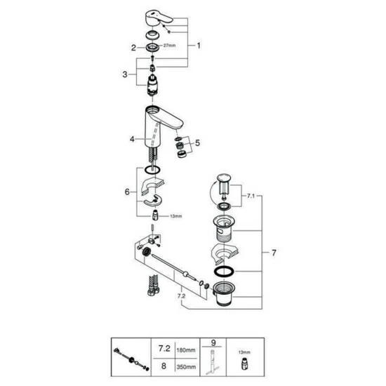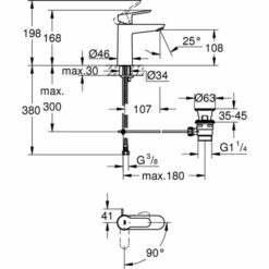 GROHE BauEdge Einhand-Waschtischbatterie, DN 15 M-Size Einlochmontage GROHE Longlife ES 28 mm Keramikkartusche Energie-Sparfunktion Mittelstellung kalt GROHE StarLight Oberfläche GROHE EcoJoy 5,7 l/min Mousseur Schnell-Montage-System Zugstangen-Ablaufgarnitur aus Kunststoff 1 1/4“ flexible Anschlussschläuchechrom