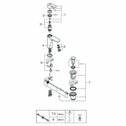„Einlochmontage, Longlife 28 mm Keramikkartusche, Energie-Sparfunktion Mittelstellung kalt, StarLight Oberfläche, EcoJoy 5,7 l/min Mousseur, Schnell-Montage-System, Zugstangen-Ablaufgarnitur aus Kunststoff 1 1/4″“, flexible Anschlussschläuche“