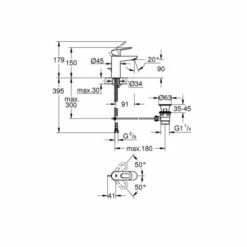 Grohe Einhand Waschtischbatterie Bauloop mit Ablaufgarnitur,1 1/4″,chrom