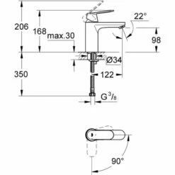 GROHE Eurosmart Cosmopolitan Einhand-Waschtischbatterie, DN 15 M-Size Einlochmontage GROHE SilkMove ES 35 mm Keramikkartusche Energie-Spar-Funktion Mittelstellung kalt variabel einstellbare Mengenbegrenzung mit Temperaturbegrenzer GROHE StarLight Oberfläche GROHE EcoJoy 5,7 l/min Mousseur GROHE QuickFix Schnellbefestigungssystem glatter Körper flexible Anschlussschläuchechrom