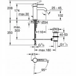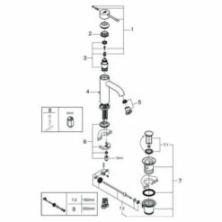 „Einlochmontage, Bedienungshebel aus Metall, SilkMove 28 mm Keramikkartusche, Energie-Spar-Funktion Mittelstellung kalt, mit Temperaturbegrenzer, StarLight Oberfläche, EcoJoy 5,7 l/min Mousseur, AquaGuide verstellbarer Mousseur, Zugstangen-Ablaufgarnitur 1 1/4″“, flexible Anschlussschläuche, QuickFix Plus Schnellbefestigungssystem“