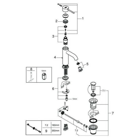 GROHE Essence Einhand-Waschtischbatterie, DN 15 S-Size Einlochmontage GROHE SilkMove ES 28 mm Keramikkartusche Energie-Spar-Funktion Mittelstellung kalt mit Temperaturbegrenzer GROHE StarLight Oberfläche GROHE EcoJoy 5,7 l/min Mousseur GROHE AquaGuide verstellbarer Mousseur GROHE QuickFix Plus Schnellbefestigungssystem Zugstangen-Ablaufgarnitur 1 1/4“ flexible Anschlussschläuche chrom
