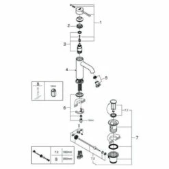 GROHE Essence Einhand-Waschtischbatterie, DN 15 S-Size Einlochmontage GROHE SilkMove 28 mm Keramikkartusche mit Temperaturbegrenzer GROHE StarLight Oberfläche GROHE EcoJoy 5,7 l/min Mousseur GROHE AquaGuide verstellbarer Mousseur GROHE QuickFix Plus Schnellbefestigungssystem Zugstangen-Ablaufgarnitur 1 1/4“ flexible Anschlussschläuche hard graphite gebürstet
