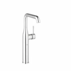GROHE Essence Einhand-Waschtischbatterie, DN 15 XL-Size Einlochmontage für freistehende Waschschüsseln GROHE SilkMove 28 mm Keramikkartusche mit Temperaturbegrenzer GROHE StarLight Oberfläche GROHE EcoJoy 5,7 l/min Mousseur GROHE AquaGuide verstellbarer Mousseur GROHE QuickFix Plus Schnell-Montage-System schwenkbarer Auslauf mit Anschlagbegrenzung glatter Körper flexible Anschlussschläuchewarm sunset