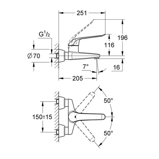 GROHE Euroeco Special Einhand-Waschtischbatterie, DN 15 Wandmontage GROHE StarLight Oberfläche GROHE SilkMove 46 mm Keramikkartusche GROHE EcoJoy Wasserspar-Technologie variabel einstellbare Mengenbegrenzung mit Temperaturbegrenzer Laminarstrahlregler 9 l/min. Gussauslauf Ausladung 205 mm Bedienungshebel aus Metall Hebellänge 170 mm S-Anschlüssechrom