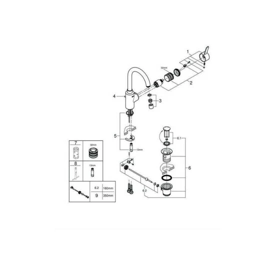 GROHE Eurosmart Cosmopolitan Einhand-Waschtischbatterie, 1/2“ L-Size Einlochmontage GROHE SilkMove 35 mm Keramikkartusche variabel einstellbare Mengenbegrenzung GROHE StarLight Oberfläche GROHE Zero getrennte innenliegende Wasserwege – kein Kontakt mit Blei oder Nickel innerhalb der Armatur GROHE FastFixation Schnellbefestigungssystem Auslauf mit Mousseur schwenkbarer Rohrauslauf mit Anschlagbegrenzung Zugstangen-Ablaufgarnitur 1 1/4“ flexible Anschlussschläuche