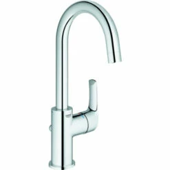 Die GROHE Eurosmart Einhand-Waschtischbatterie DN15 L-Size mit schwenkbaren Rohrauslauf für die Einlochmontage ist mit einem Bedienungshebel aus Metall mit Temperaturbegrenzer, einer GROHE SilkMove® 28 mm Keramikkartusche, der GROHE StarLight® Chromoberfläche sowie dem GROHE EcoJoy® Mousseur ausgestattet.