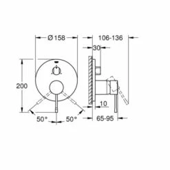 mit 3-Wege-Umstellung · SilkMove 46 mm Keramikkartusche · StarLight Oberfläche · Wandrosette mit QuickFix mit verdeckter Rosetten- und Schaftabdichtung · verdeckte Befestigung · Rosette aus Metall · nachträglich 6° ausrichtbar · Bedienungshebel aus Metall · Durch