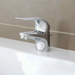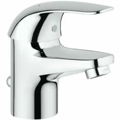 Die GROHE Euroeco Einhand-Waschtischbatterie für die Einlochmontage ist ausgestattet mit der GROHE StarLight® Chromoberfläche, einem Bedienungshebel aus Metall, einer GROHE SilkMove® 35 mm Keramikkartusche und einer variabel einstellbare Mengenbegrenzung. Zum Lieferumfang gehört ein Mousseur, ein Durchflussbegrenzer 9 l/min., eine Zugstangen-Ablaufgarnitur 1 1/4′, und die flexiblen Anschlussschläuche mit 10 mm Steckrohr, sowie ein Schnell-Montage-System.
