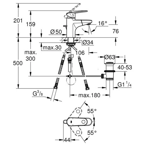 Einlochmontage · SilkMove 35 mm Keramikkartusche · mit Temperaturbegrenzer · variabel einstellbare Mengenbegrenzung · Bedienungshebel aus Metall · SpeedClean Mousseur · integrierter Rückflussverhinderer · Zugstangen-Ablaufgarnitur 1 1/4″ · Schnell-Montage-System, Weitere technische Eigenschaften: · Anschluss Vorlauf Schlauch (Verschraubung)· Anschlussmaß Zufuhr 3/8 Zoll· Anzahl der Armaturenlöcher 1-löchig· Anzahl der Griffe eingriffig· Aufbauhöhe gesamt 201mm· Aufbauhöhe Unterkante Hahnauslass 76mm· Ausführung Ablauf ausziehbar mit Perlator· Auslauftyp sonstige· Grundfarbe Chrom· Kaltstart-Funktion Nein· Material Hahn Messing· Mit Griffen Ja· Mit Heißwasser-Sparfunktion Nein· Mit Rosetten/Abdeckplatte Nein· Mit Temperaturbegrenzung Ja· Mundstück Wasserhahn Schaumstrahldüse· Niederdruckausführung Nein· Oberflächenbehandlung poliert· Oberflächenschutz verchromt· Rückflusssicherung nach EN 1717 EB· Schließmechanismus Kartusche keramisch· Typenzulassung nach BBR/EKS Nein· Versehen mit …