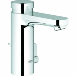 GROHE Eurosmart CT Selbstschluss-Waschtischbatterie, DN 15 mit Mischung und variabel einstellbarem Temperaturbegrenzer GROHE StarLight Oberfläche Zugstangen-Ablaufgarnitur 1 1/4“ Laufzeiteinstellung kurz, mittel oder lang (Werkseinstellung: kurz) ca. 7, 15 oder 30 sek. (druckabhängig) Druckbereich 0,5 bis 6 bar 2 flexible Anschlussschläuche Rückflussverhinderer Schmutzfangsiebe, chrom