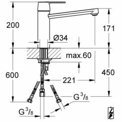 GROHE GET KÜCHENARMATUR: – Markenprodukt von Grohe, 30197000 – Einhandmischer für Spüle – Niederdruckarmatur – Ausladung: 22,1 cm – Anschluss: Typ 1/2 ‚ – Auslauf schwenkbar – SilkMove Keramikkartusche – StarLight Chrom-Oberfläche – Mosseur – Anschlagbegrenzung – Variable Mengenbegrenzung – Schnell-Montage-System: Standmontage – Robuster Messingkern
