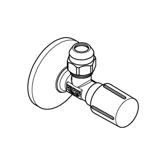 GROHE Eckventil, 1/2“ angerauhtes Gewinde zum vereinfachten Eindichten Wandanschluss 1/2“ Abgang 3/8“ mit Längenausgleich mit Quetschverschraubung D: 10 mm wassergeschützte Spindelabsperrung, Messing, mit Fettkammer und doppelter O-Ring Abdichtung langer Schubschaft ergonomischer Metallgriff Markierung neutral Schubrosette aus Metall D: 55 mm GROHE StarLight Oberfläche