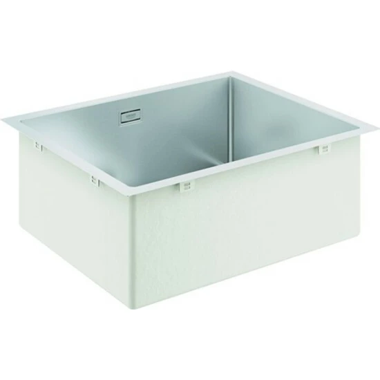 GROHE K700 Edelstahlspüle Modell: K700 60-S 55/45 1.0 Montageart: Unterbau, aufliegend oder flächenbündig Material: Edelstahl AISI 304 (V2A) Materialstärke: 1 mm GROHE StarLight Oberfläche Oberfläche: Satin Finish GROHE Whisper min. Maß Unterschrank: 600 mm Maße: 550 x 450 mm 1 Becken: 500 x 400 x 200 mm Außenradius: R11 (unterbau)/R3 (aufliegend), Innenradius: R10 GROHE FastFixation Schnellbefestigungssystem Ausschnittmaß (Unterbau): 502 x 402 mm (R11) Ausschnittmaß (aufliegend): 535 x 435 mm Ablauf: D: 3,5“/ 90 mm Siebkorbventil Zubehör beiliegend: Ablaufgarnitur, Siebkorbventil, Montageset Exzenterbedienung optional erhältlich (40 986 SD0) Anzahl der enthaltenen Befestigungsklammern: 8