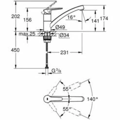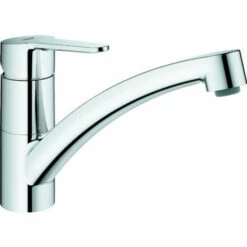 GROHE BauEco Einhand-Spültischbatterie, 1/2“ flacher Auslauf Einlochmontage GROHE StarLight Oberfläche GROHE Longlife 35 mm Keramikkartusche GROHE Zero getrennte innenliegende Wasserwege – kein Kontakt mit Blei oder Nickel innerhalb der Armatur schwenkbarer Rohrauslauf Schwenkbereich 140 Grad Mousseur mit Münzschlitz für werkzeugfreien Austausch flexible Anschlussschläuche GROHE FastFixation Plus Schnellbefestigungssystem